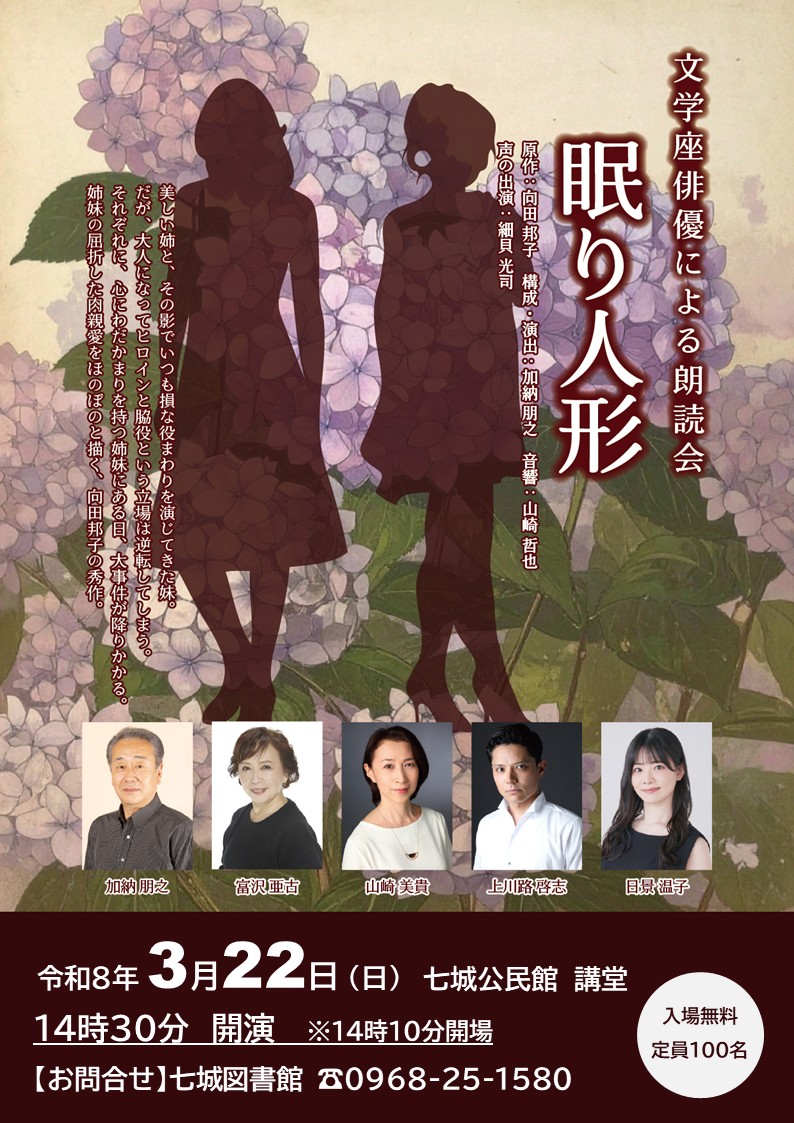 今年度で4回目を迎えた文学座俳優による朗読公演。今回は向田邦子の短編集より『眠り人形』の公演です。