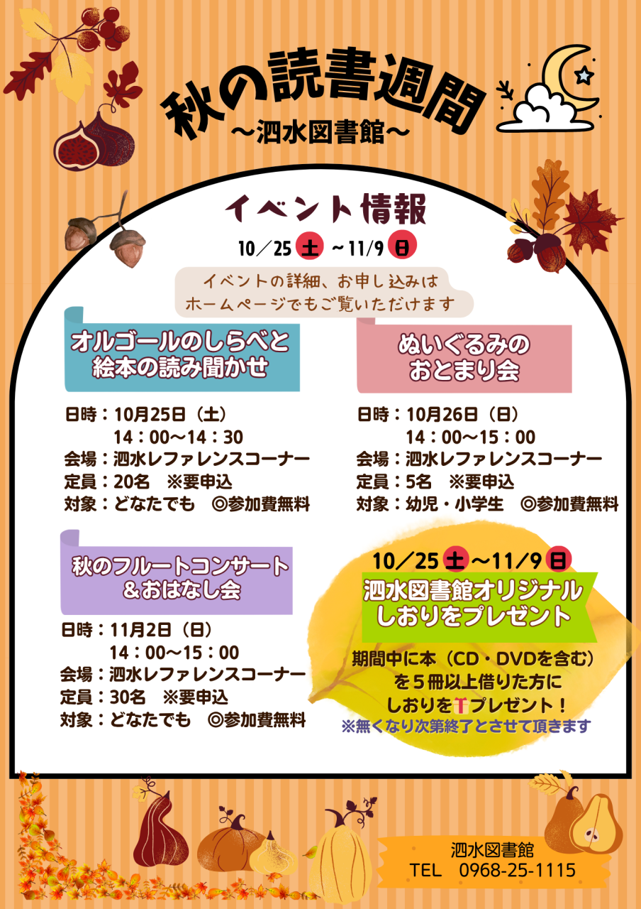 🎃泗水図書館 秋の読書週間イベントを開催します🎃