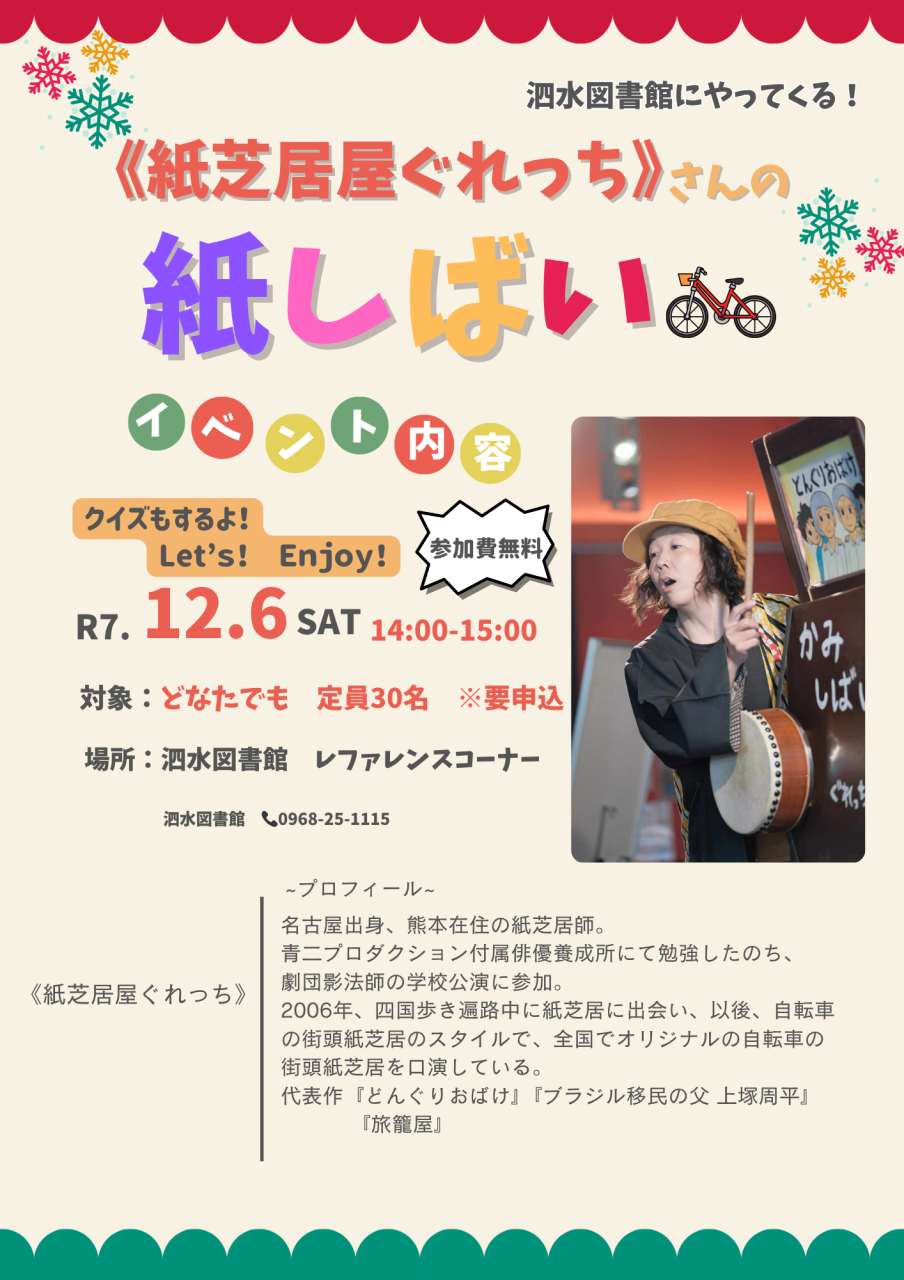 紙芝居屋ぐれっちさんによる紙しばいの読み聞かせを行います🚲