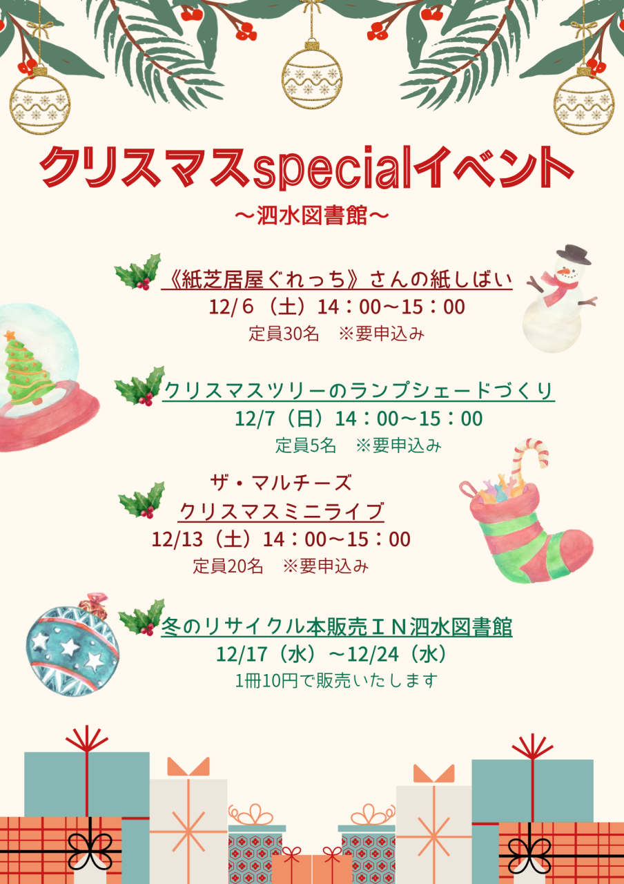 12月の泗水図書館はイベントが目白押しとなっています⛄