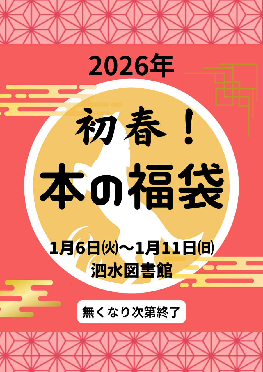 「初春!本の福袋」の貸出を行います🎍 本の福袋とは…それぞれのテーマに沿って、司書が2冊ずつオススメの本を入れています。 どんな本が入ってるかは開けてからのお楽しみ😉 大人向けと子供向けで分けているので、気になったものをぜひお手に取ってみてください!