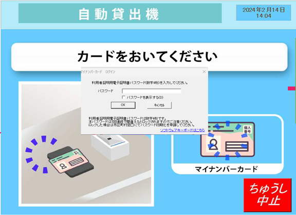 パスワード入力画面が表示されたら、【ソフトウェアキーボードはこちら】を押します